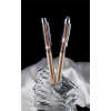 Elegáns kivitelű, kiváló minőségű, eredeti Swarovski® kristályokkal töltött golyóstoll. A tolltest fém, logózható, lézergravírozható. Elegáns ajándék magánszemélyek és cégek részére. Tolltest színe: arany. Kristály színe: topáz. Betét színe: kék. Vonalvas