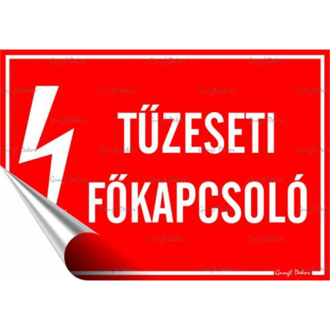 Információs matrica, 11,6x16,6 cm, Tűzeseti főkapcsoló Tűzeseti főkapcsoló információs matrica - anyaga: öntapadós műanyag fólia (vinil) - damil akasztót nem tartalmaz - mérete: 11,6x16,6 cm