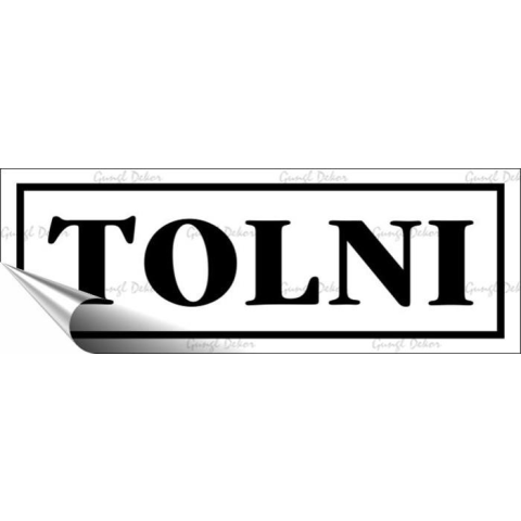 Információs matrica, 14x5 cm, Tolni, fehér Tolni információs matrica - anyaga: öntapadós műanyag fólia (vinil) - damil akasztót nem tartalmaz - fehér alapon fekete betűk - mérete: 14x5 cm