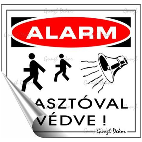Információs matrica, 8,7x8,3 cm, Riasztóval védve Riasztóval védve információs matrica - anyaga: öntapadós műanyag fólia (vinil) - damil akasztót nem tartalmaz - mérete: 8,7x8,3 cm