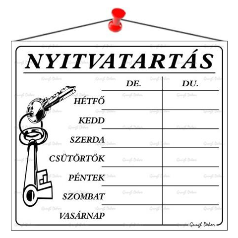 . Információs tábla, 20x17,5 cm, Nyitvatartás , fehér
