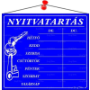 Információs tábla, 20x17,5 cm, Nyitvatartás, kék Nyitva tartás információs tábla, 7 napos. - kék alapon fehér szöveg - anyaga: hullámos műanyaglemez, damil akasztóval - a termék tartalmaz egy öntapadós betű-szám lapot, mellyel a kívánt időpontok kiírh