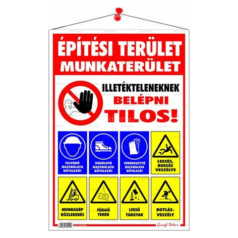 1 kép . Információs tábla, 50x35 cm, "Építési terület!"