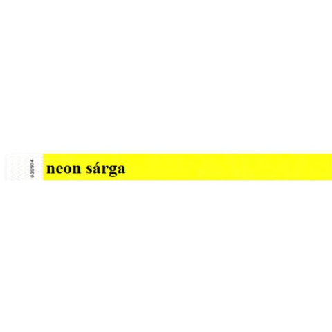 Karszalag, 3/4, tyvek, neon sárga ragasztócsíkkal záródik hosszúsága: 253 mm feliratozható hosszúság: 150-200 mm (csuklómérettől függően) szélessége: 19 mm feliratozható szélessége: 15 mm