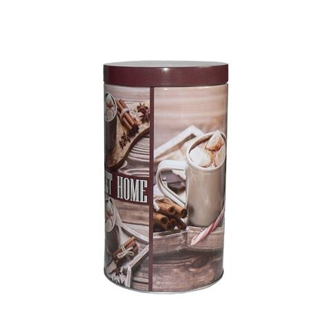 Kávétartó doboz, fémhenger, mintás, 11x18 cm - KHKE255 - Konyhai kiegészítők - Fémből készült, lezárható kávés doboz őrölt és szemes kávé tárolásához.