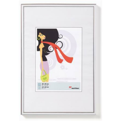 Képkeret, műanyag, 13x18 cm, New Lifestyle, ezüst (DKL009) vékony, gömbölyű léccel fémes hatású festéssel közepén perforációval, melyet kiemelve a megmaradt rész paszpartuként használható hátlapja farostlemez, kitámasztóval fektethető és állítható,
