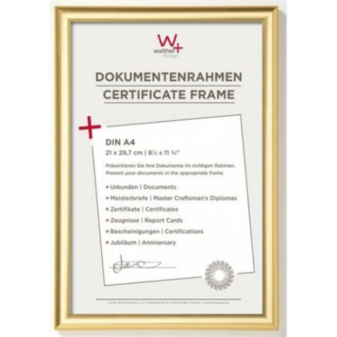 Képkeret, műanyag, 21x29,7 cm, A4, "Walther Trendstyle", arany - DKW01 - Képkeretek - Dokumentum keret 21x29,7 cm-es képhez, profilozott léccel, fémes hatású festéssel.