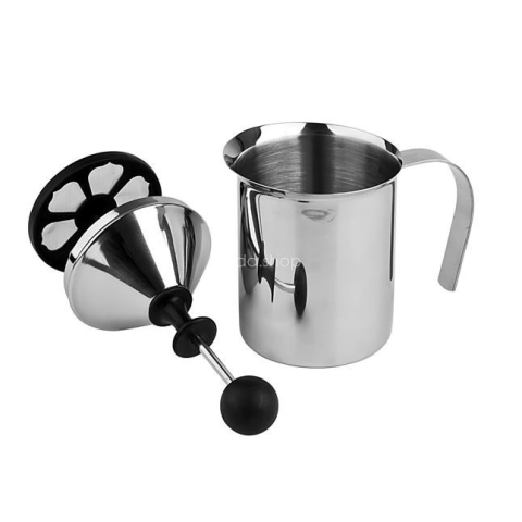 Kézi tejhabosító, rozsdamentes acél, ezüst színű, 40cl Elegáns forma, egyszerű használat. Kb. 1/3-ig javasolt tejjel feltölteni. Tegyünk forró tejet az edénybe, majd a pumpa segítségével habosítsuk fel.