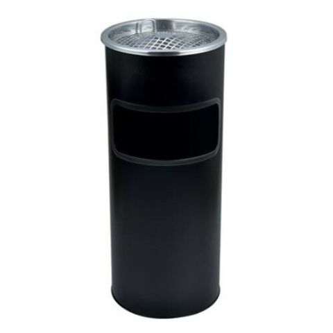 1 kép . Kültéri szemetes, fém, tűzálló, kivehető hamutartóval, fekete, 25x58 cm