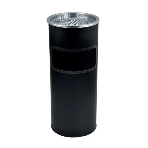 Kültéri szemetes, fém, tűzálló, kivehető hamutartóval, fekete, 25x58 cm. - /db Kültéri szemetes kivehető hamutartóval. Tűzálló. Rozsdamentes acélból készült, magas minőségű termék. Űrtartalma kb.28 l.