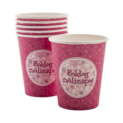 1 kép . Pohár, papír, "Boldog Születésnapot", rózsaszín