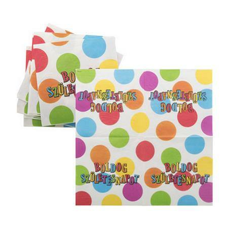 2 kép . Szalvéta, 33x33cm, Boldog születésnapot, csíkos-pöttyös (PTF446121)