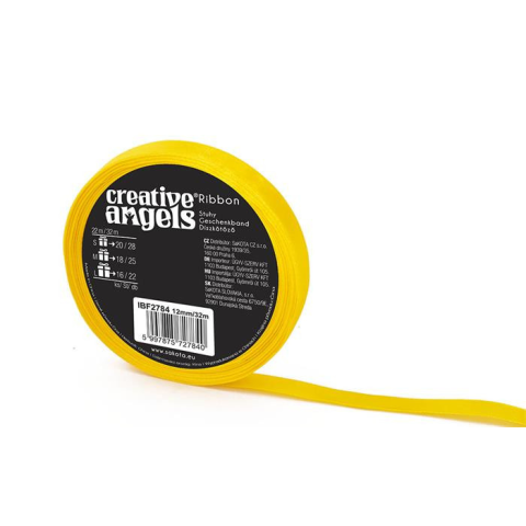 . Szatén szalag, 12 mm x 32 m, sárga (ISKE230) szalag, masni árgrafikon