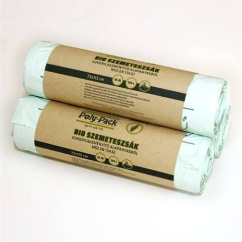 Szemeteszsák, lebomló, 73x115 cm, 120 l, 10 db Környezetbarát, komposztálható, biológiai úton lebomló (PLA), megújuló forrásból származó, kukoricakeményítő alapú szemeteszsák. Megfelel az MSZ EN 13432:2000 szabványnak. 73x115 cm 120 liter 10 db Gyárt