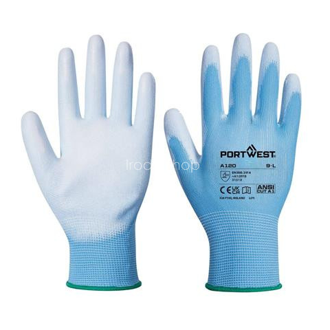 Szerelőkesztyű, tenyéren mártott, 8-as méret,kék minőségi precíziós szerelőkesztyű finommechanikai munkákhoz tenyéren PU bevonattal kényelem és kiváló fogásbiztonság szín: kék