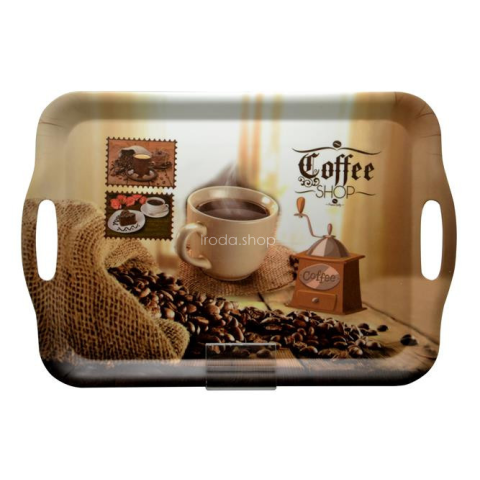 Tálca, szögletes, műanyag, kávéház mintás, 35,5x25,5 cm Praktikus, jól tisztítható, csúszásmentes. Mosogatógépben tisztítható. Méret: 35,5 x 25,5 cm