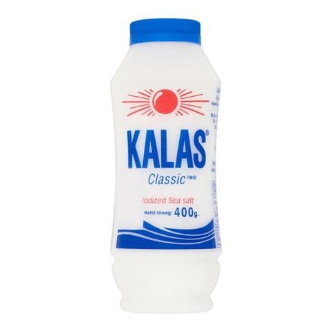 Tengeri só, szóródobozos, 400 g, "Kalas" - KHK595 - Ízesítőszerek - Jódozott, görög tengeri só Összetevők: jódozott tengeri só, tapadásgátló anyag (kálium-ferro-cianid) Származási hely: Görögország