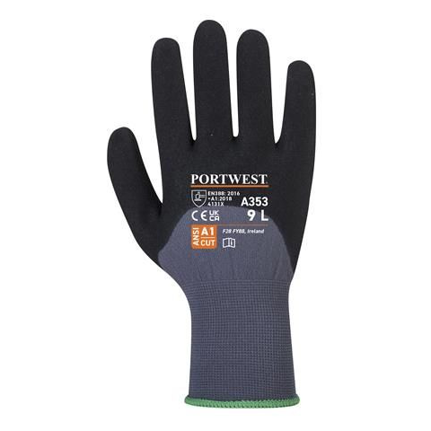 A munkavédelmi kesztyű extrakönnyű 15 g nylon és elasztán szálból, ökölcsontig mártott (habosított nitril és PU - poliuretán) bevonattal készül, ami lélegző, ugyanakkor rendkívül ellenálló.