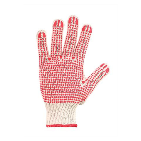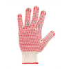 Védőkesztyű, kötött, csúszásgátló pöttyökkel, 7 méret, fehér/piros - csúszás elleni pettyek mind a két oldalon - két oldalon használható - gumírozott mandzsetta - anyag:kötött poliészter/pamut cérnakesztyű - szín: piros-pettyes - 1 pár/ csomag Gyártó/