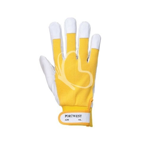 -kiváló minőségű kecskebőrből készült -tépőzáras mandzsettával -pamut kézháttal -egyedi színkódolt méretezéssel -L sárga
