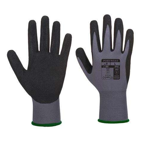 Védőkesztyű, nitril, L méret "Dermiflex Aqua", szürke-fekete - MED147 - Többször használható kesztyűk - Az innovatív (NANO) technikának köszönhetően, ez a munkavédelmi kesztyű tökéletesen taszítja a vizet és a különböző nehéz olajokat. A szuperkönnyű, nit