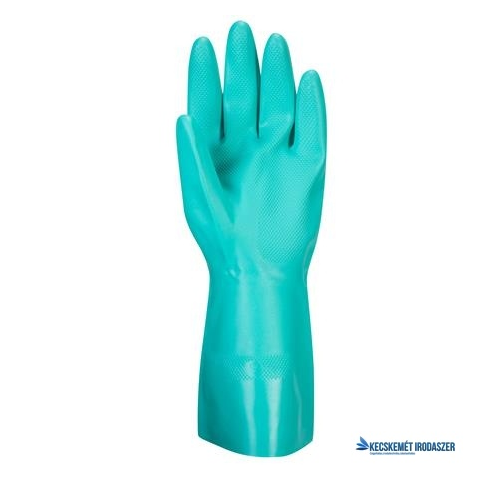 Védőkesztyű, nitril, vegyszerálló, hosszúszárú, L méret "Nitrosafe" - MED144 - Többször használható kesztyűk - Vegyszerálló hosszúszárú munkavédelmi kesztyű csúszásmentesített textúrált mintázatú tenyérrel, ami a fokozott fogásbiztonságot segíti. Kényelme