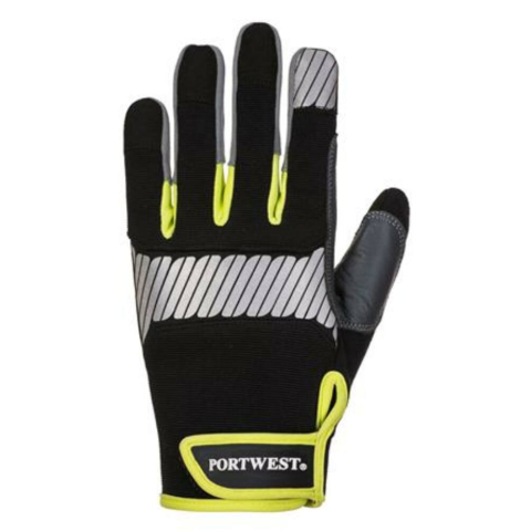 A Védőkesztyű, szintetikus bőr, általános használatra, XL méret, fekete (MED228) Ez a nagy teljesítményű kesztyű többcélú és alkalmas bármilyen munkára. - Könnyű és kényelmes használat a teljesítmény romlása nélkül - A PW3 fényvisszaverő szalag javítja