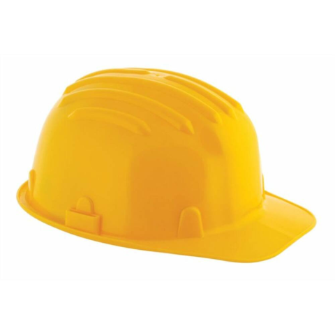 Védősisak, sárga (ME5201) - HD polietilén - -20 °C és +50 °C között használható - 440 V váltakozó feszültségű villamos vezetékek érintése elleni védelem - 6 ponton rögzített - állítható sisakkosár (53-62 cm) - nedvszívószivacsos izzadságszalag