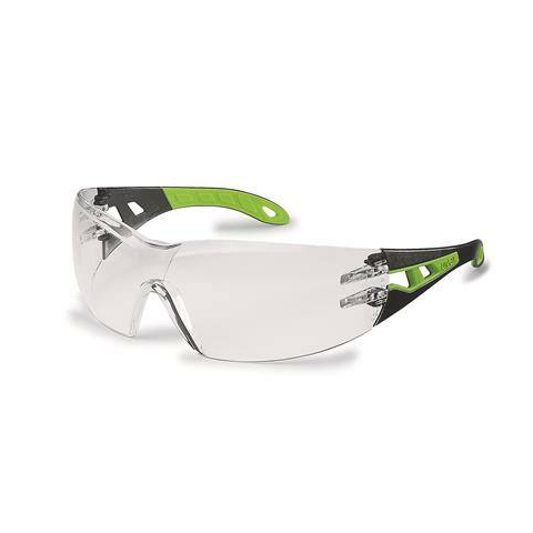 Védőszeműveg, víztiszta lencse, UVEX, Pheos lime-fekete szár (ME865) Keret: nagy szilárdságú műanyag Lencse: uvex supravision excellence bevonattal, kívül a nanotechnológia révén extrém karcmentesség, ellenáll a vegyi anyagoknak, könnyen tisztítható, b