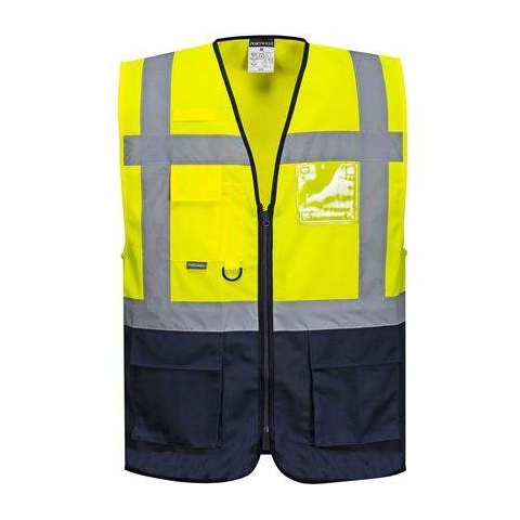 Vezetői mellény, jól láthatósági, L méret "Warsaw", narancssárga-tengerészkék - MED150 - Jelzőmellények, figyelemfelkeltő eszközök - Poliészter jól láthatóságot biztosító munkavédelmi mellény, egyedi praktikus megoldásokkal: többfunkciós zsebek, mobiltele