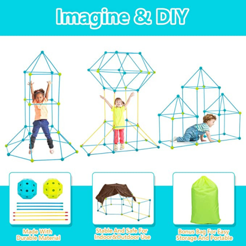 Okozz örömet a gyermekednek azzal, hogy megvalósíthatja a saját elképzelt kis világát és megépítheti a egyedi bunkerét! Legyen az barlang, rakéta, ház, iglu, hercegnővár, alagút, játéksátor, kalózhajó és még sok más. Szinte bármi elkészíthető a játéknak a segítségével! A 120 darabos mágikus erődítmény-készítőnk lehetővé teszi gyermekednek vagy unokádnak, hogy bármilyen formájú és méretű erődöt építsen! A szórakozás nagyszerű módja, miköz