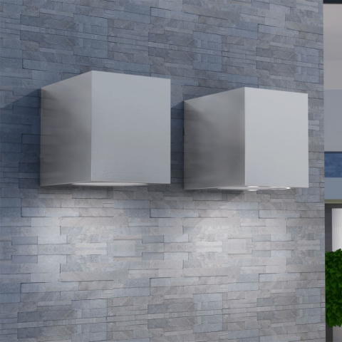 Ez a 2 darabos szett egy minimalista, modern tervezéssel rendelkezik. Alumíniumból készült, melynek egy rozsdamentes acél jellege van. Ezek a lámpák feldobják külterét. A beépített üveg diffúzor még jobban feldobja a lámpa külsejét. Mivel a fényt lefele vetíti, így egy kellemes megvilágítást nyújt, így különösképpen házak elülső felére vagy a kertjébe felel meg. IP44 osztályzatával időjárásálló és tartós, így kültéri használatra tökéletes. Ebbe