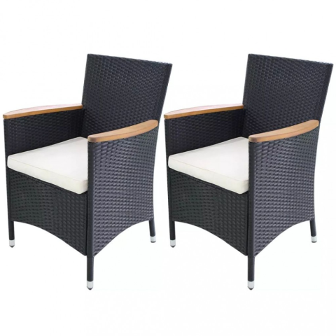 Teljes 2 db fekete polyrattan kerti szék párnával termékleírás