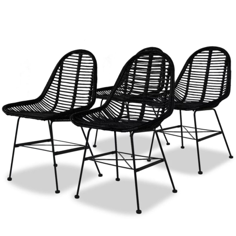 4 db fekete, természetes rattan étkezőszék bútor termékleírás