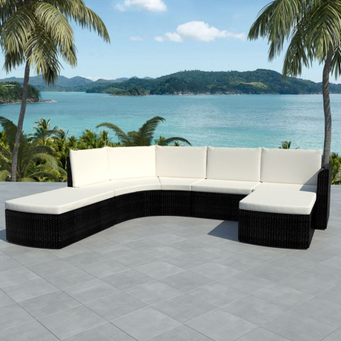 4 részes fekete polyrattan kerti bútorszett párnákkal kerti bútor termékleírás