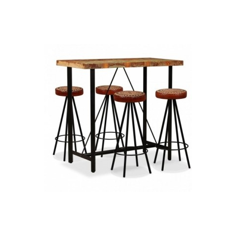 5 részes tömör újrahasznosított fa/valódi bőr/vászon bárszett bútor termékleírás
