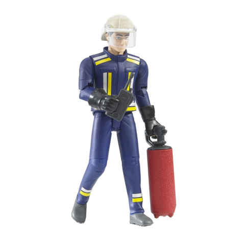 Bruder Bworld Tűzoltó figura kiegészítőkkel Életet ment a tűzoltó figura kiegészítőkkel! A Bruder Bworld Tűzoltó figura kiegészítőkkel egy kék ruhás tűzoltó ember piros palackkal és rádióval a kezében A Bruder Bworld Tűzoltó figura kiegészítőkkel jó k