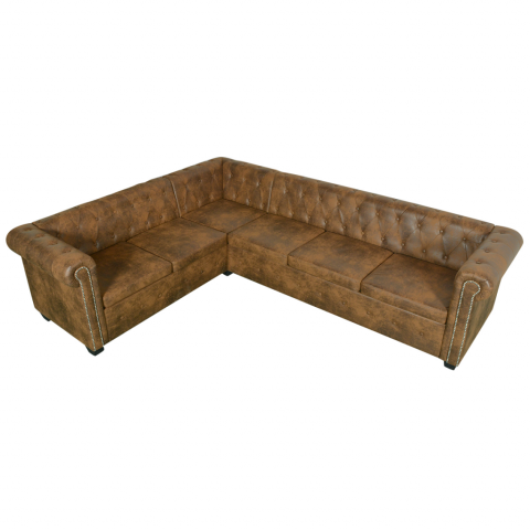 Teljes 6 személyes barna műbőr Chesterfield sarok kanapé termékleírás