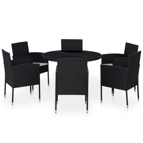 7-részes fekete polyrattan kültéri étkezőszett párnákkal kerti bútor termékleírás