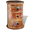 Antikolt hatású kerek tömör fa 3-fiókos éjjeli szekrény bútor termékleírás