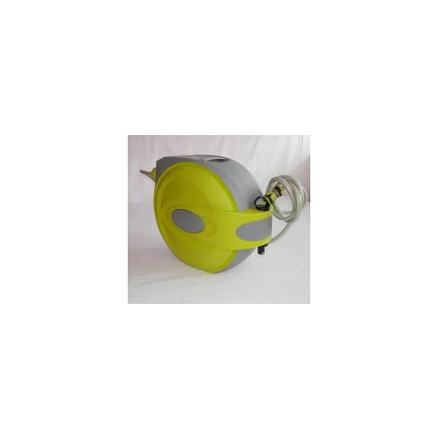 Az automata öntöző tömlőtartó 20 + 2 méter tömlővel készült. A tömlőtartó ház a falra szerelhető és 0° – 180°-ban elfordítható. Az alacsony fordulatszámú, automatikus csévélőre jellemző a könnyed és rendezett tömlővisszahúzás. A tartó dob belső működése a felső nyitható fedélen át ellenőrizhető. A locsoló tömlő hossza a tetszőleges pozícióba állítható és rögzíthető. A tömlőméret 12 x 16 mm. A nyomás 8 bar, feszítőnyomás 24 ba