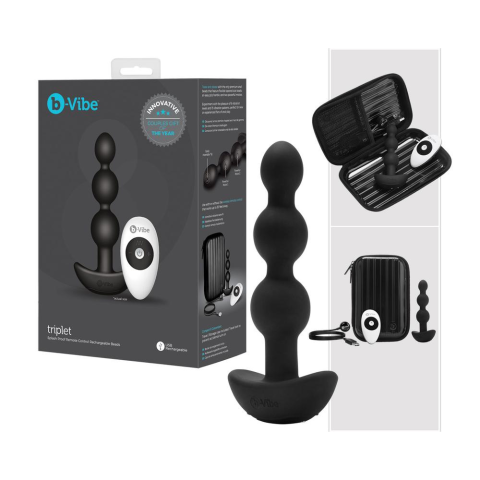 b-Vibe - tripla gyöngyös, akkus anál vibrátor (fekete)