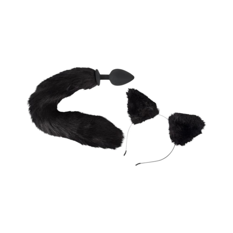 1 kép Bad Kitty - cicafül cicafarokkal anál dildó szett - fekete (2 részes)