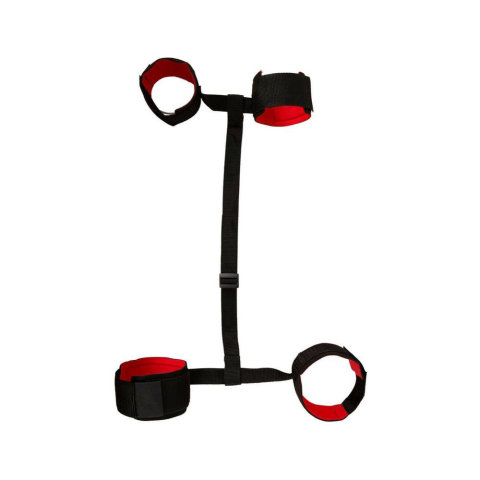 - Puha, bélelt nyak- és csuklómandzsetták fekete szakadásmentes pánttal összekötve (45 cm-es, állítható hosszúságú)