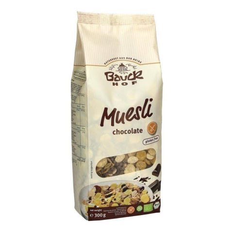 A Bauck Hof étcsokis ropogós bio müzli ideális reggeli a csokikedvelőknek. Gluténmentes termék. Összetétel: kukoricadara, étcsokoládé 21% (kakómassza, nyers nádcukor, kakóval, kakaópor) napraforgóolaj, rizsliszt, hajdinaliszt, nyers nádcukor, amarant lis