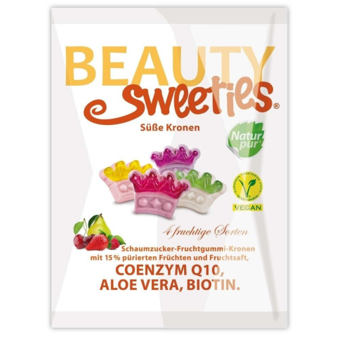 Nassolj a szépségért! Gyümölcsös habcukor-gumicukor koronák 15 % gyümölcspürével és gyümölcslével, Q10-koenzimmel, aloe verával és biotinnal. Vegán termék sosem volt még ennyire finom! Glutén-, zsír-, laktóz-, tartósítószer- és zselatinmentes. Mestersé