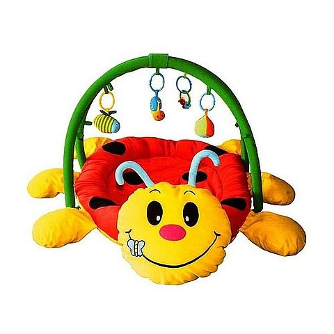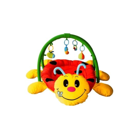 Bébi játszószőnyeg katicás Katica alakú játszószőnyeg bájos mintákkal! A katicás bébi játszószőnyeg egy puha babafekhely amire két alul rögzíthető karon 4 db levehető játék van felfüggesztve A felfüggeszthető játékok és a játszószőnyeg színei, mintái
