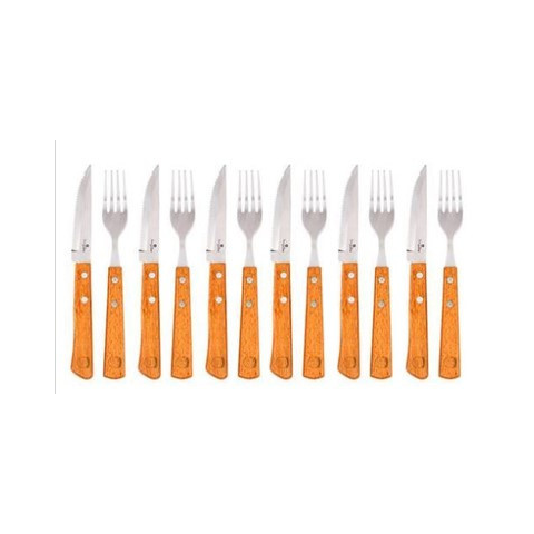 Kiváló minőségű steak evőeszköz készlet Fa fogantyú Étteremi érzést kelt otthonában Anyaga: rozsdamentes acél/fa Steak kés 6 db Villa 6 db Színe: barna