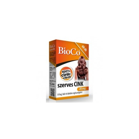 Szerves CINK 60 db tabletta - BioCo SZERVES KÖTÉSŰ CINKET TARTALMAZÓ ÉTREND-KIEGÉSZÍTŐ TABLETTA A BioCo szerves CINK kizárólag szerves kötésű citrát formában tartalmazza a haj, bőr és köröm normál állapotának fenntartásához szükséges cinket magas, 20 mg-o