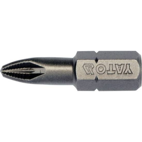 Anyag: S2 Hossz: 25 mm Szerszámtartó típus: hatszögletű (HEX) Gyártási technológia: hidegen kovácsolt Keménység: 58-61 HRC Szerszámtartó mérete: 1/4 (6,3 mm) Nyomaték: 19,6 Nm Tipp befejezés: homokfúvott Hegy mérete (PZ): PZ2